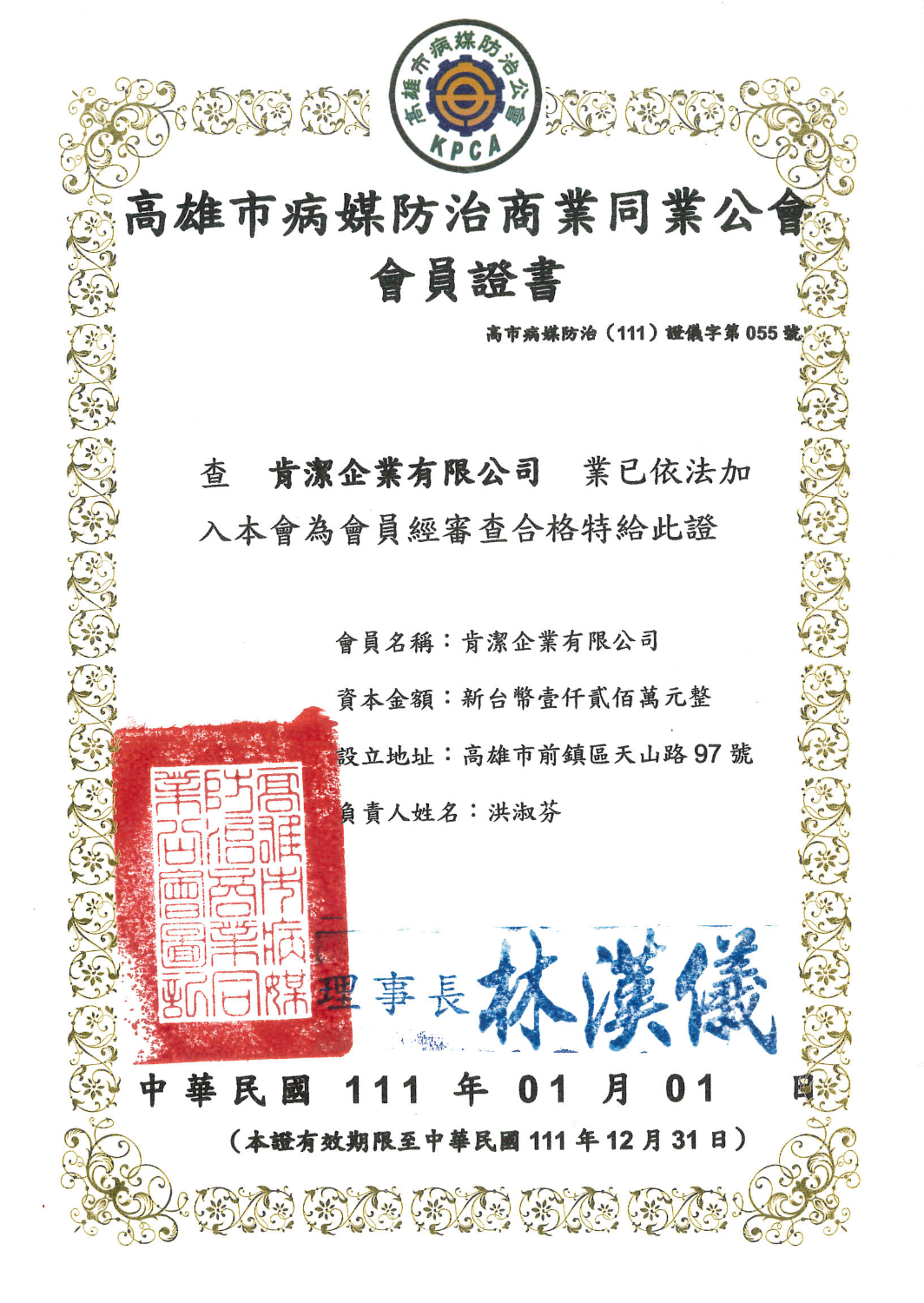 - 證明專業能力:持有病媒防治公會會員證的人士,代表他們已經通過公會所舉辦的相關認證或考試,證明具備相應的病媒防治專業知識及技能。