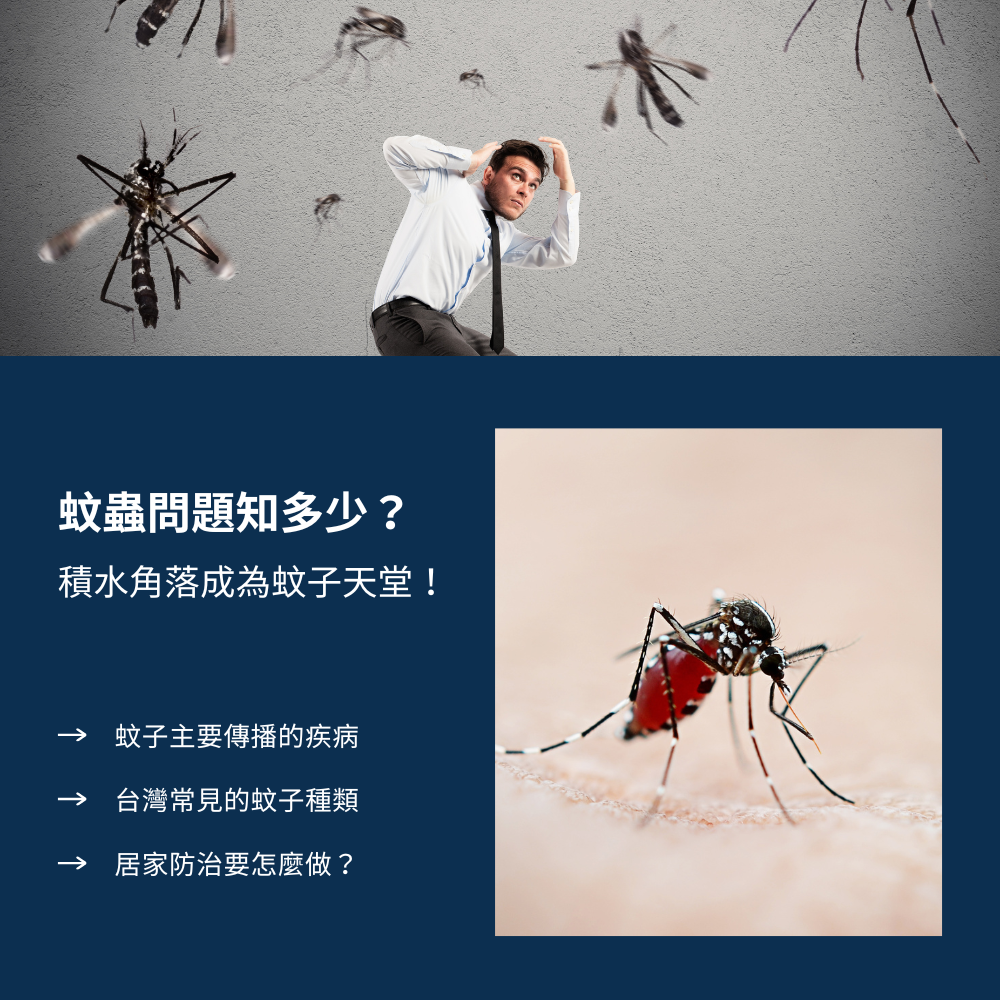 ▲ 蚊子是一種昆蟲,屬於蚊科,身體細長,腿細長,可以跳躍和飛行。在台灣常見蚊子種類包括埃及斑蚊、白線斑蚊、黑斑瘧蚊、環蚊、三斑家蚊等。其多半繁殖在水體附近,如水坑、排水溝、花盆、屋簷等處,成蟲則會在人類附近尋找血液進食,雌蚊需吸血後才能有繁殖能力。而在台灣,蚊子更是許多疾病的傳播媒介之一。