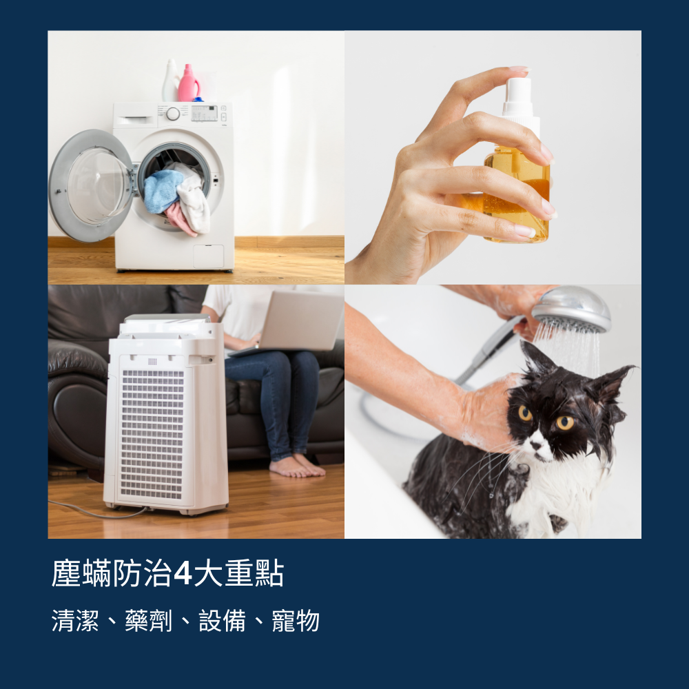 - 清潔環境:保持室內乾燥、通風良好,定期清潔床墊、枕頭、地毯、窗簾等易積累塵垢的物品,並且注意清潔宠物的環境。